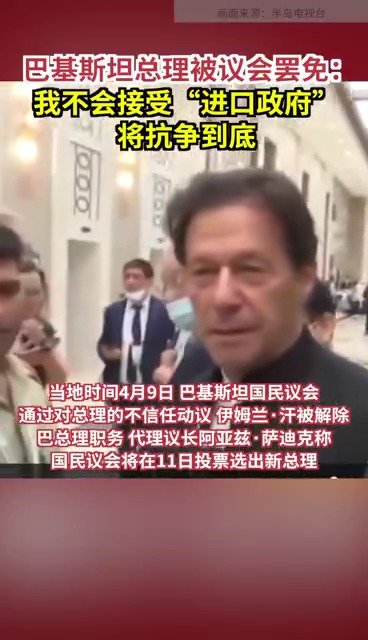 巴基斯坦总理被议会罢免:我不会接受“进口政府”,将抗争到底
