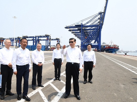 12日上午,习近平总书记来到位于海南省儋州市的洋浦经济开发区,先后考察了洋浦展示馆、洋浦国际集装箱码头小铲滩港区,了解洋浦经济开发区发展和中国特色自由贸易港建设等情况。(文字记者:张晓松、朱基钗;摄影记者:李学仁、谢环驰、燕雁)