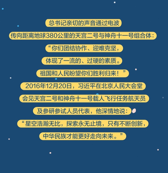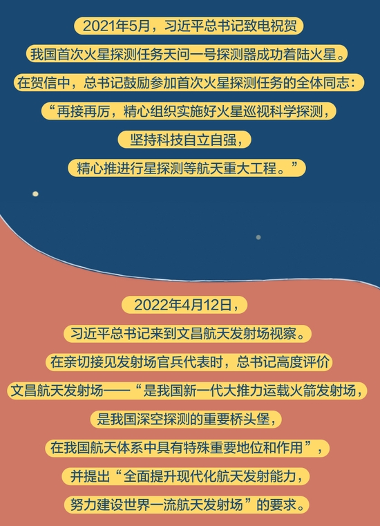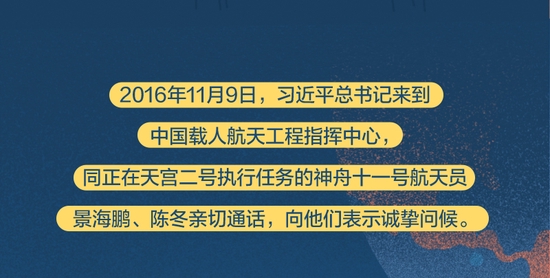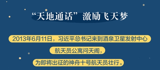 党的十八大以来,总书记始终高度关注我国航天事业发展,多次同执行任务的航天员展开“天地通话”、给参与“东方红一号”任务的老科学家回信、亲切接见航天工作者、深情寄语航天人……