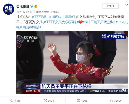 作为迈出中国女性舱外太空行走第一步的女航天员,王亚平安全顺利出舱后表示最想跟女儿说:“摘星星的妈妈”回来了!