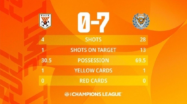 此前中超球队亚冠最大失利比分是0-7,分别是上赛季亚冠北京国安0-7川崎前锋,以及本赛季亚冠首轮山东泰山0-7大邱FC。