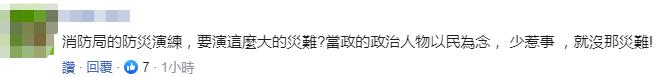 另有网友直言,“消防局的防灾演练,要演这么大的灾难?台湾的政治人物以民为念,少惹事,就没那灾难!”