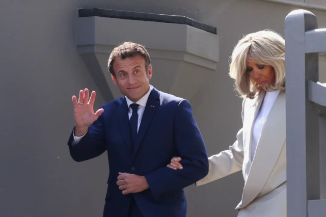 当地时间2022年4月24日,法国加莱海峡省勒图凯,法国总统与夫人布丽吉特现身当地,参加法国总统选举第二轮投票。图/IC photo