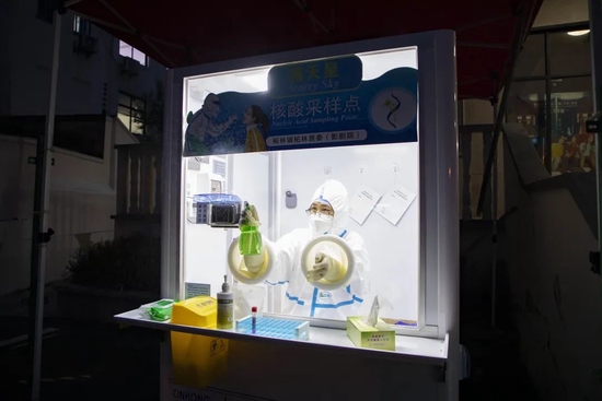 按照“步行15分钟核酸服务圈”标准,虹口首个“核酸检测便民采样点”目前已经启用。记者看到,在北外滩核酸检测便民采样点,白玉兰广场的部分保障人员前来采样,间隔两米,有序排队。采样点内部可同时容纳两位医生,通过外壁玻璃孔上的防护手套,实现“无接触式核酸采样”。“固定采样点+便民采样点+流动采样车”,虹口进一步优化核酸检测需求科学布局,预计规划设置120个核酸采样点,并鼓励公立医院、第三方专业机构等多元主体参与采样点建设。