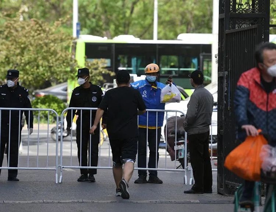 ▲4月26日,居民到小区门口自取网购的生活物资。