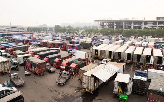 ▲从昨天夜里开始,前往新发地市场采购的车辆明显增多。受访者供图