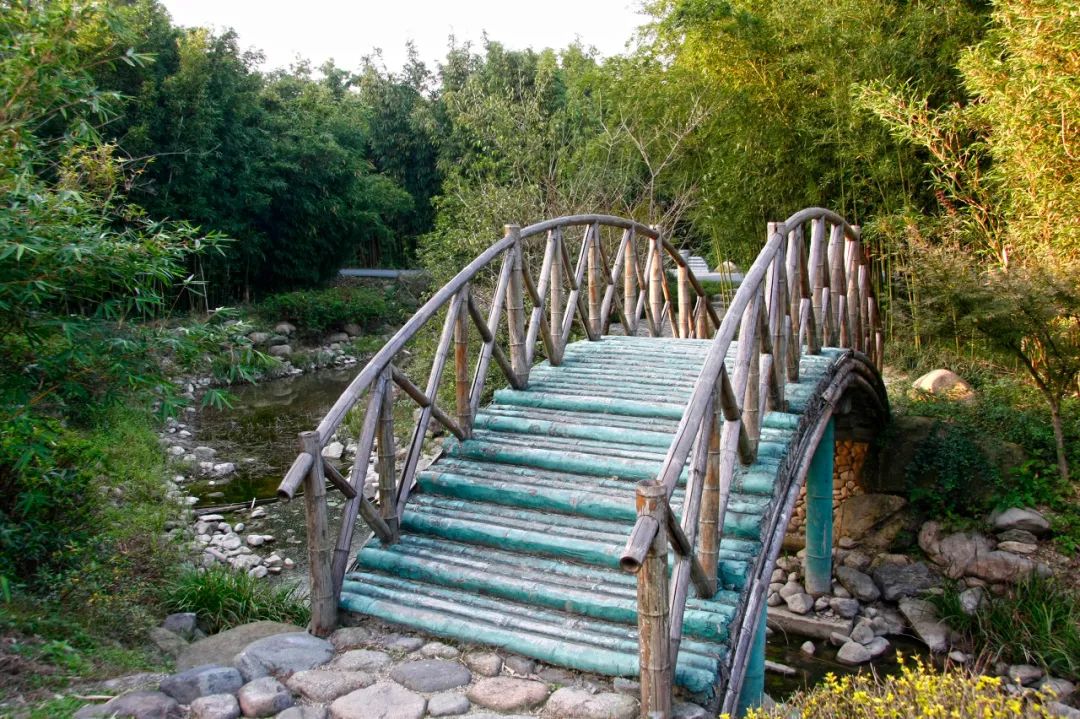 园内任何你看得到的房子、小桥,都带着竹子元素。