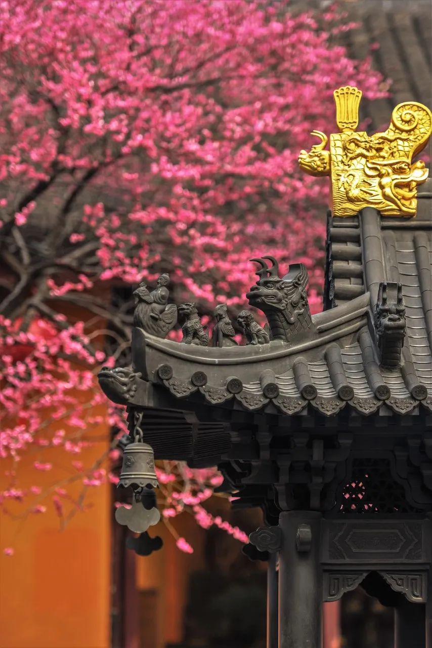飞扬的檐角下,铜铃轻声作响,树下那一串串悬挂着的祈福牌,被风温柔抚动,载满了人们的期寄。