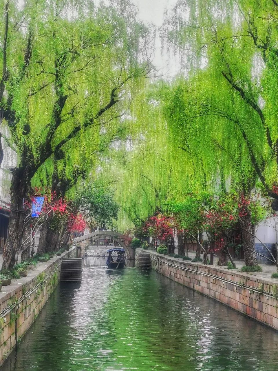 清一色白墙黑瓦的建筑,沿河分布,坐上乌篷船顺着运河悠然而走,旁边有晒着太阳的老人,有浣衣洗菜的人家,玩闹的儿童......
