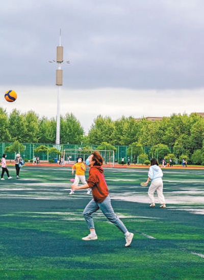 4月25日,江湾校区操场上,同学们在锻炼身体。
