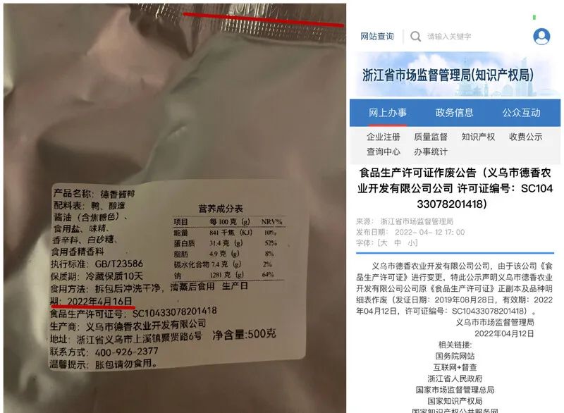 在4月28日晚上海市市场监管局通报的调查情况中,正是这家有案底的上海戎阳超市管理有限公司将涉嫌虚假标注生产日期的酱鸭、“三无”白砂糖、存在异味且涉嫌侵权的大米发放到了闵行、宝山等区的居民手中。