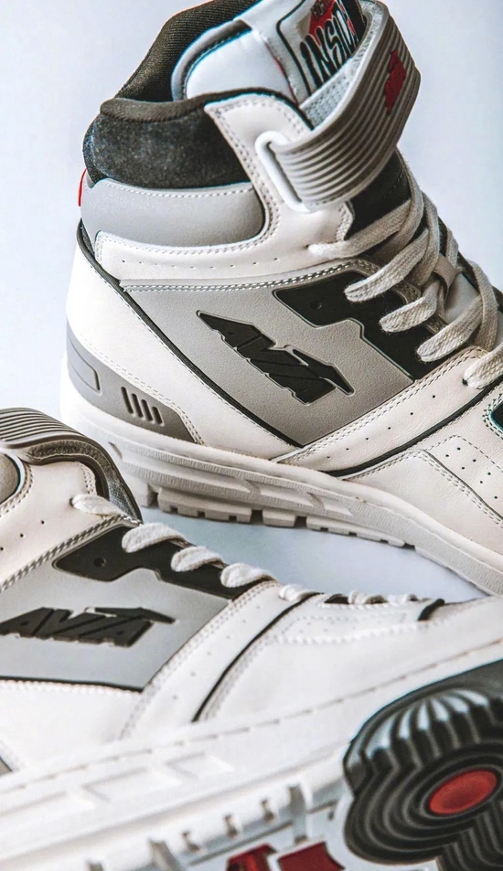 AVIA的篮球鞋在外形上有统一且浓郁的八十年代风格的设计语言:高耸的鞋帮和整体相比现代篮球鞋略显臃肿的鞋型。