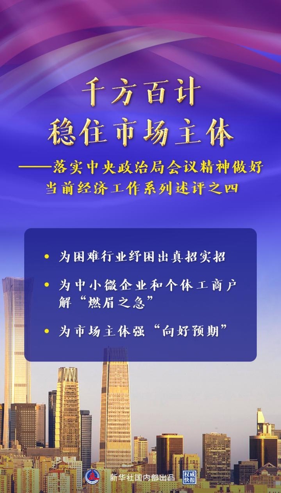 原标题:新华述评|千方百计稳住市场主体——落实中央政治局会议精神做好当前经济工作系列述评之四