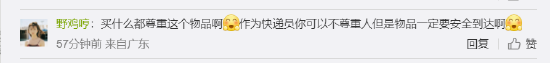 对此,有网友表示,买什么都尊重这个物品啊,作为快递员,物品一定要安全到达。