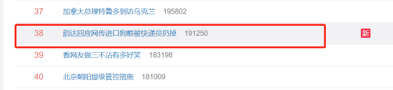 5月9日,#韵达回应网传进口狗粮被快递员扔掉# 登上微博热搜。