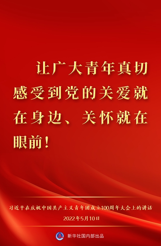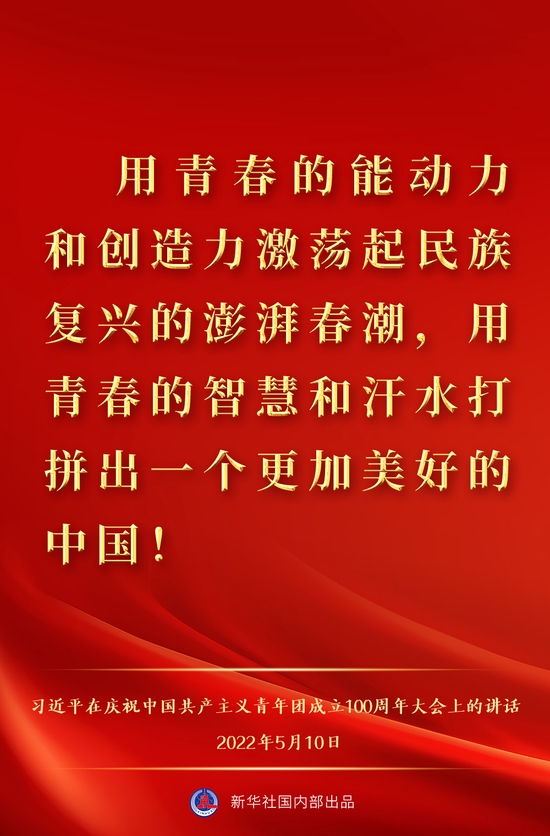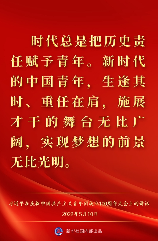 5月10日上午,中共中央总书记、国家主席、中央军委主席习近平出席庆祝中国共产主义青年团成立100周年大会并发表重要讲话,一起来看金句。
