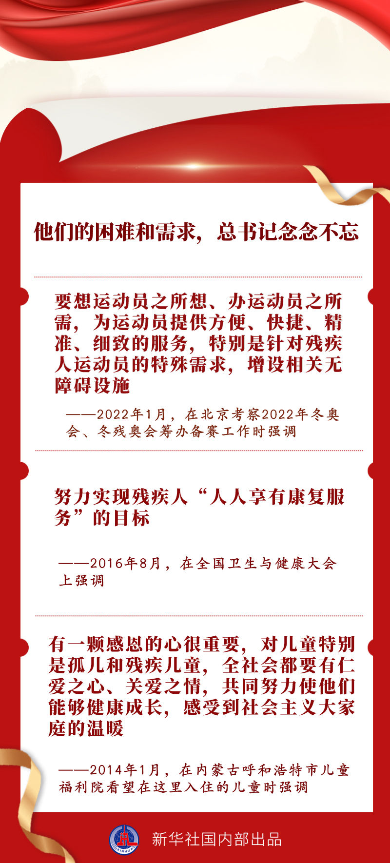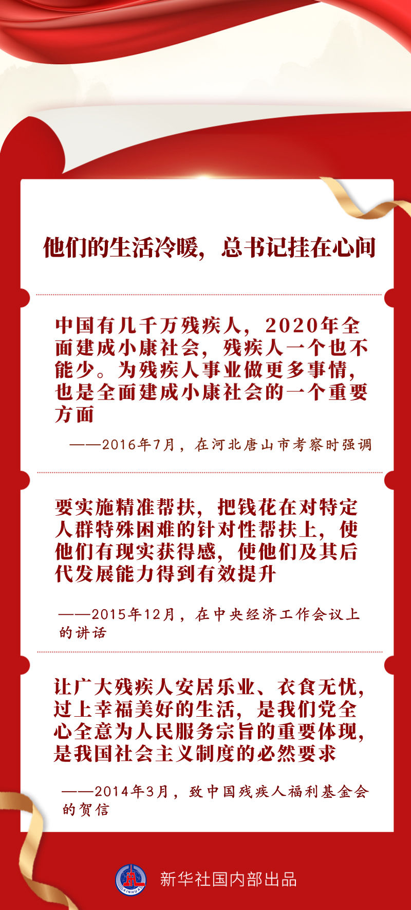 我国有8500万残疾人,是特殊困难的群体。党的十八大以来,习近平总书记对残疾人“格外关心、格外关注”,围绕保障残疾人基本民生、改善残疾人生活品质、促进残疾人全面发展等方面多次发表重要讲话、作出重要指示。5月15日,在第三十二次全国助残日到来之际,让我们一同感悟总书记心中这份“格外”的爱。