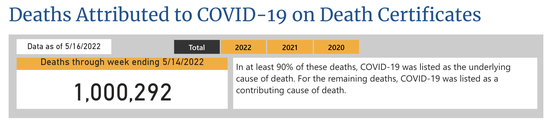 当地时间5月16日,美国疾控中心(CDC)正式宣布,美国因为COVID-19死亡人数已经超过100万人。其中,至少90%的死亡病例中,COVID-19是主要原因。