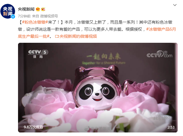 【#粉色冰墩墩#来了!】本月,冰墩墩又上新了,而且是一系列!其中还有粉色冰墩墩,设计师说这是一款有爱的产品,可以为更多人带去爱。根据授权,#冰墩墩产品6月底生产最后一批#。