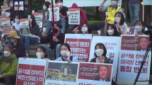 针对美国推动的所谓“印太经济框架”,抗议民众表示,美韩不应该选择加强军事同盟,刺激军备竞赛,而是应该选择和平以及合作。