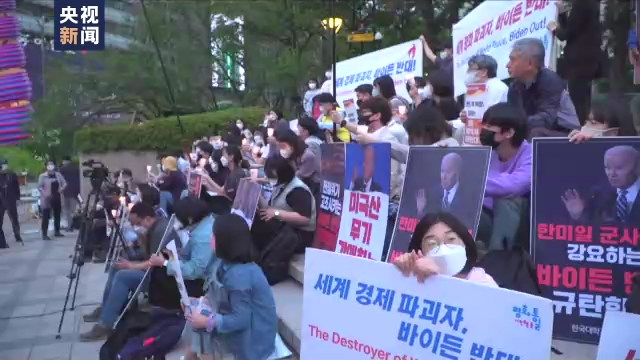 美国总统拜登20日起访问韩国,韩美两国表现出来的强化军事同盟、构建排他性经贸合作体系等动作引发韩国民众担忧。20日下午,多个韩国市民团体代表在首尔街头举行集会,抗议拜登访韩。