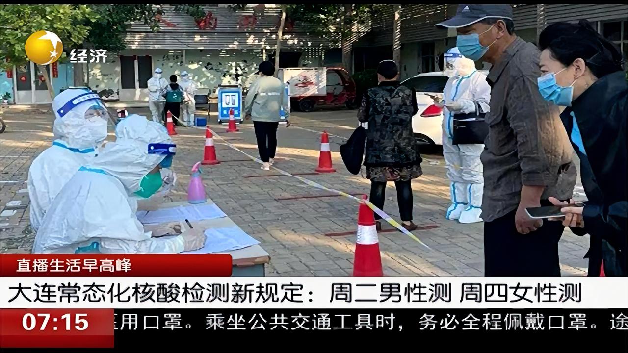 大连常态化核酸检测新规定:周二男性测 周四女性测