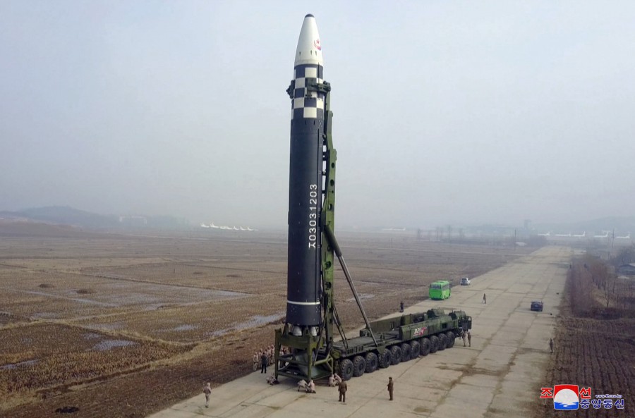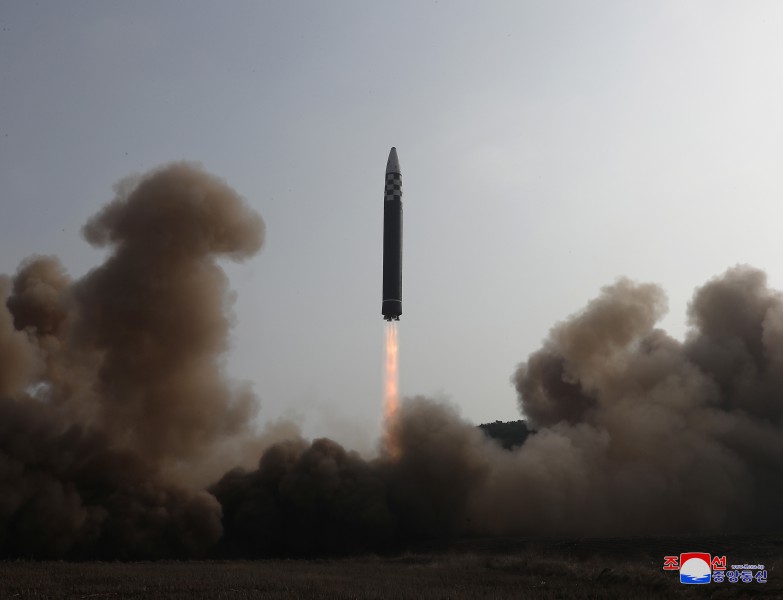 “火星-17”型导弹此前试射现场图 图自朝中社,下同