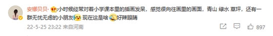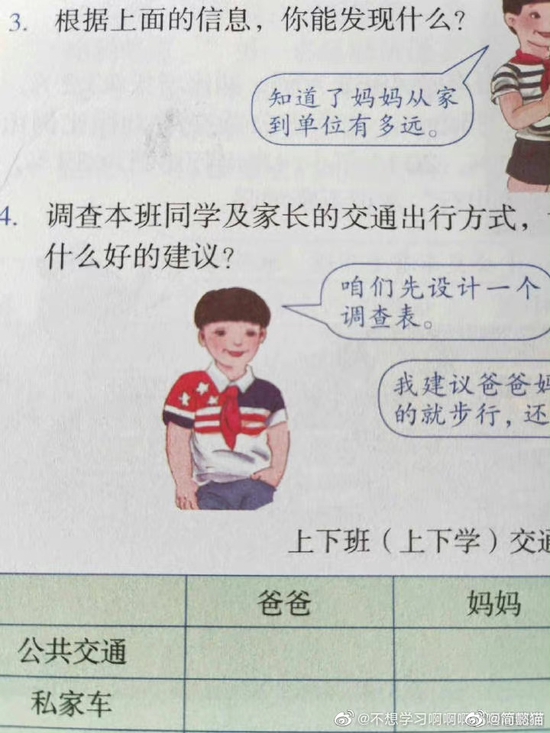 有网友翻出以前的教材的插图,表示画里的孩子朝气蓬勃,非常阳光,让人很是向往。