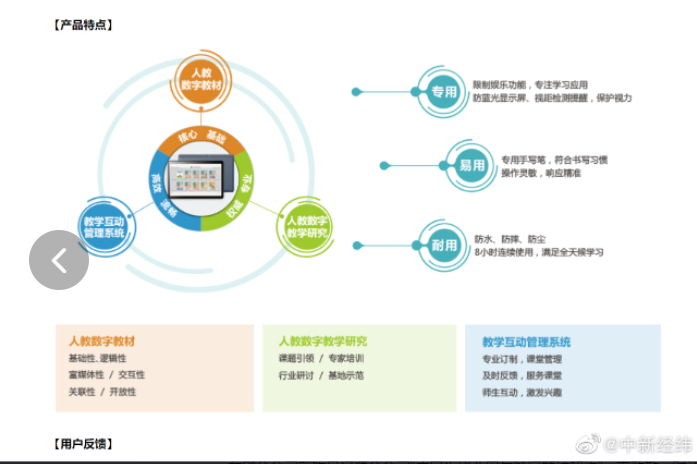 中新经纬微博消息 人教Pad定价超4000元引关注,官网显示,人教Pad有两种配置,价格区间在3680元—4380元之间。5月27日下午,中新经纬发现,人教社官网已删去了关于人教Pad的配置及价格介绍,仅保留产品特点和用户反馈两栏。