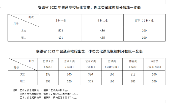 6月24日上午,安徽省教育招生考试院公布2022年安徽省高考录取各批次最低控制分数线。2022年安徽一本文科523分,理科491分。