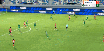 第65分钟,张宇峰斜传禁区,迪诺头球破门,长春亚泰1-1扳平比分。