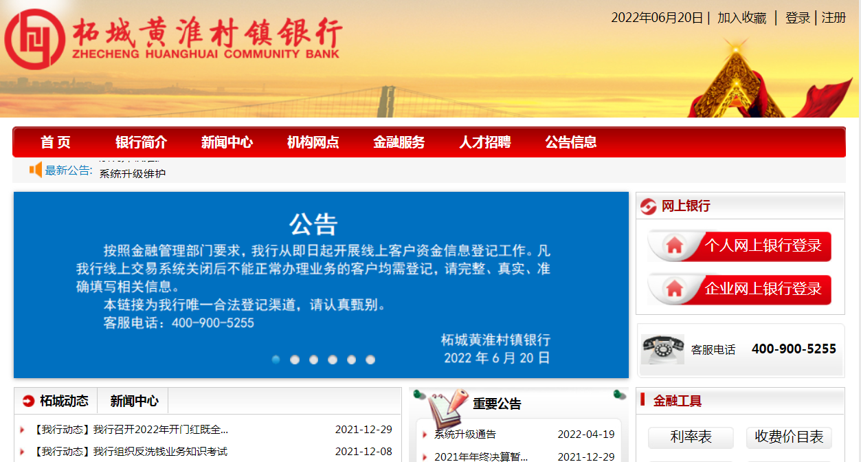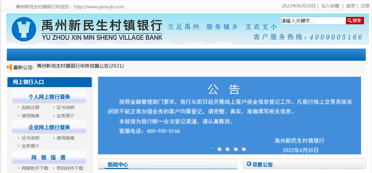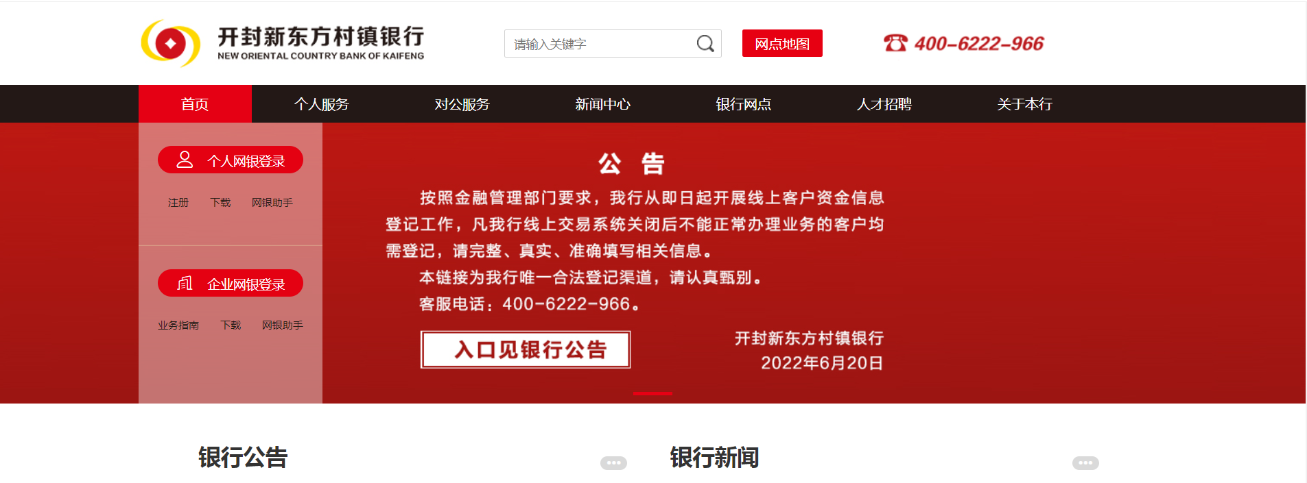 此前,6月20日,河南四家村镇银行(禹州新民生村镇银行、柘城黄淮村镇银行、上蔡惠民村镇银行、开封新东方村镇银行)发布公告称,按照金融管理部门要求,从即日起开展线上客户资金信息登记工作。凡在该行线上交易系统关闭后不能正常办理业务的客户均需登记。