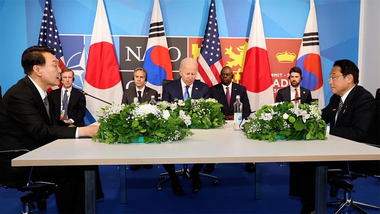 韩美日领导人时隔近5年再次举行三边会谈 韩媒:仅进行25分钟