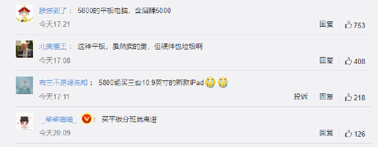 对此,网友纷纷表示离谱:“买平板分班就离谱”,“ 5800能买三台10.9英寸的新款iPad”,“这种平板,虽然卖的贵,但硬件也垃圾啊”
