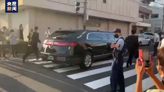 载有日本前首相安倍晋三遗体的灵车驶离医院