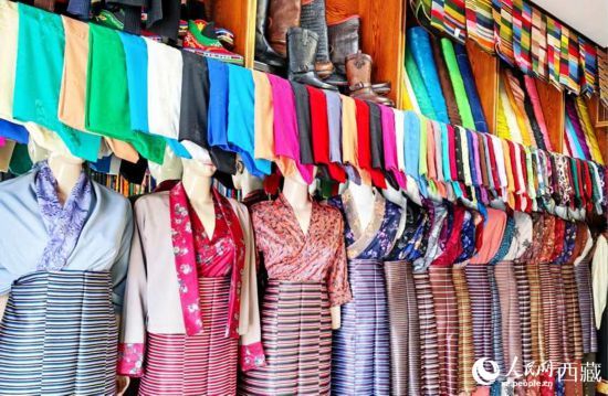 环绕拉萨八廓古城,开满了藏装店。人民网 李海霞摄