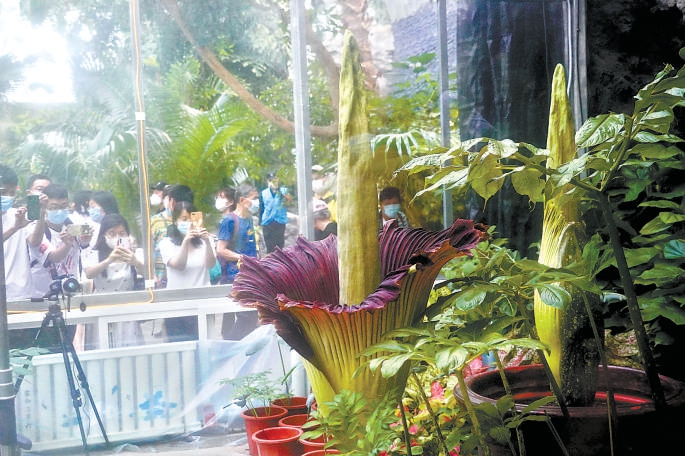 (原标题:人工栽培状态下首次群体开花,濒危巨魔芋“接二连三”绽放国家植物园)