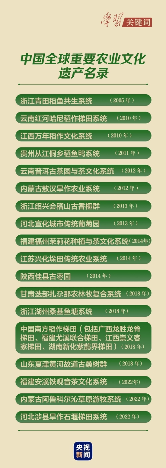 党的十八大以来,我国启动实施国家级重要农业文化遗产挖掘和认定工作,推动农遗事业迈上新台阶。