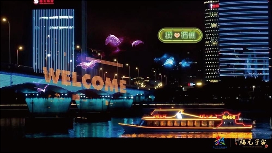 数字交互之夜是以“福元宇宙是基于人人都可构筑的愿景”为核心思想,选择福州闽江两岸以及会展岛的特色三处典型区域,展开的一次“R真实场景+AR技术”数字灯光秀。数字交互之夜还融入中国文化、科技及“龙、鱼”、展会吉祥物等形象,以构建数字世界下的人类新家园为核心,秉承大气、精彩、可持续为创作原则,立足展现数字中国的科技魅力。