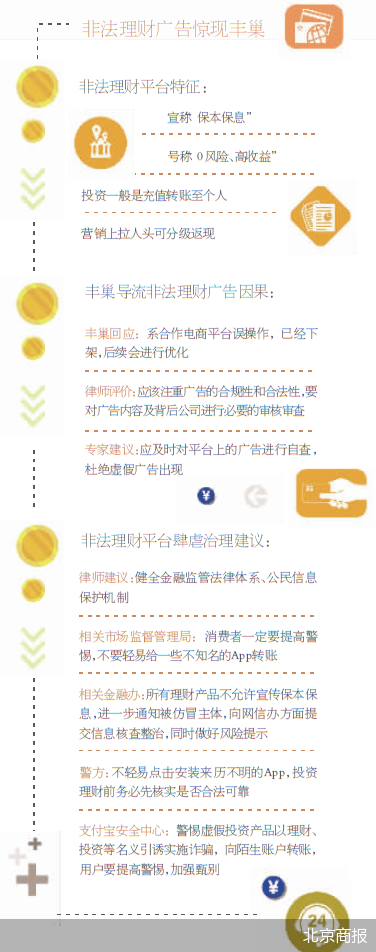 数据显示,丰巢智能柜已覆盖200+城市,服务4亿+用户,对于导流非法互联网理财广告一事,北京商报记者向丰巢方面采访,对此,丰巢相关人员回应称,目前与丰巢合作的广告投放方大都为电商平台,此次推送的理财广告为乌龙事件,投放方合作的原是电商广告,但对方工作人员在未经丰巢报批的情况下,误操作将广告更改为投资理财广告。