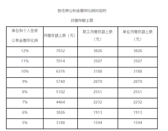 附件:各住房公积金缴存比例对应的月缴存额上限