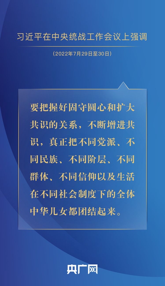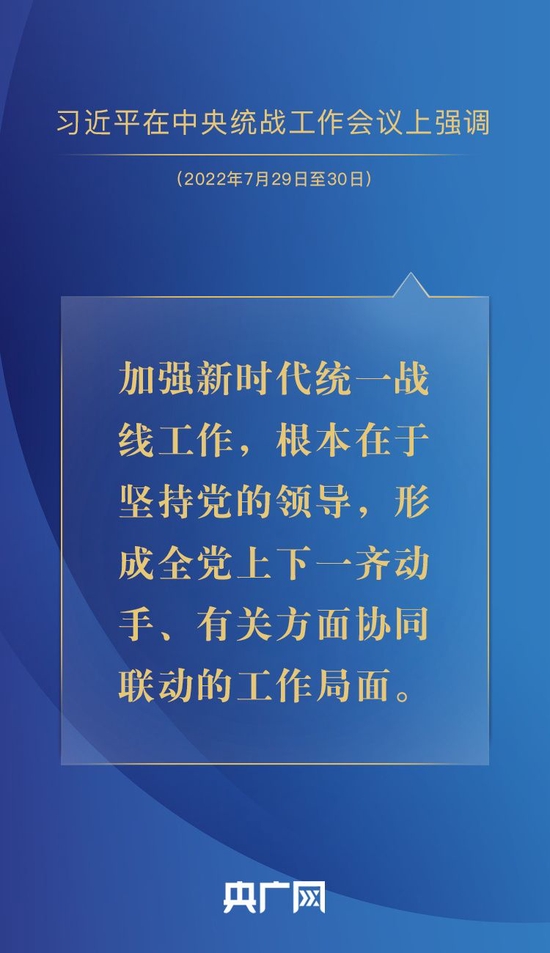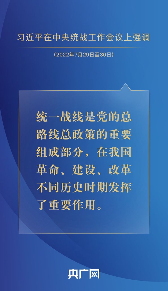 中央统战工作会议7月29日至30日在北京召开。中共中央总书记、国家主席、中央军委主席习近平出席会议并发表重要讲话,强调今年是我们党明确提出统一战线政策100周年。要坚持爱国统一战线发展的正确方向,准确把握新时代爱国统一战线的历史方位、基本任务,为促进海内外中华儿女团结奋斗、实现中华民族伟大复兴汇聚磅礴伟力。