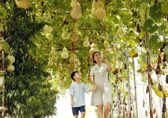 7月31日,游客在邢台市南和区郝桥镇尚鑫家庭农场游玩。近年来,河北省邢台市南和区依托当地农业资源优势,加快推进休闲农业和乡村旅游发展,打造农旅融合新业态,助推乡村振兴。新华社发(张驰 摄)