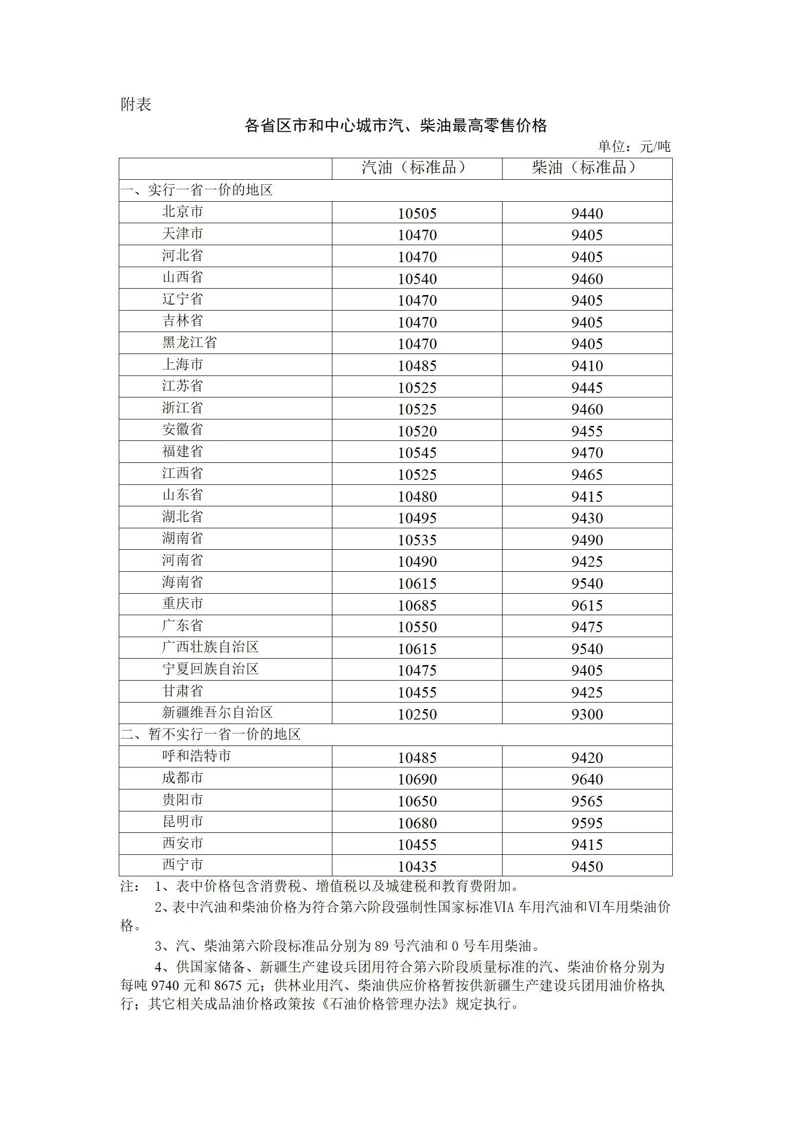 记者从国家发改委获悉,本次油价调整具体情况如下:国内汽、柴油价格每吨分别下调130元和125元。全国平均来看:92号汽油每升下调0.1元;95号汽油每升下调0.11元;0号柴油每升下调0.11元。