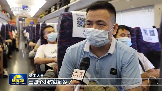 务工人员:三四个小时就到家了,感觉现在回家的路又幸福又舒心。