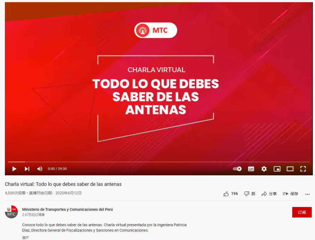 秘鲁运输和通信部“关于天线,你需要知道的一切”线上讲话。