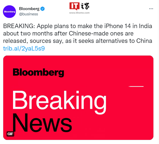 IT之家了解到,本月初天风国际分析师郭明錤在推特爆料,称根据他最新调查显示,苹果将首次在印度几乎与中国同时出货新款的 6.1 英寸 iPhone 14。而在此前,印度通常会比中国晚一个季度出货。