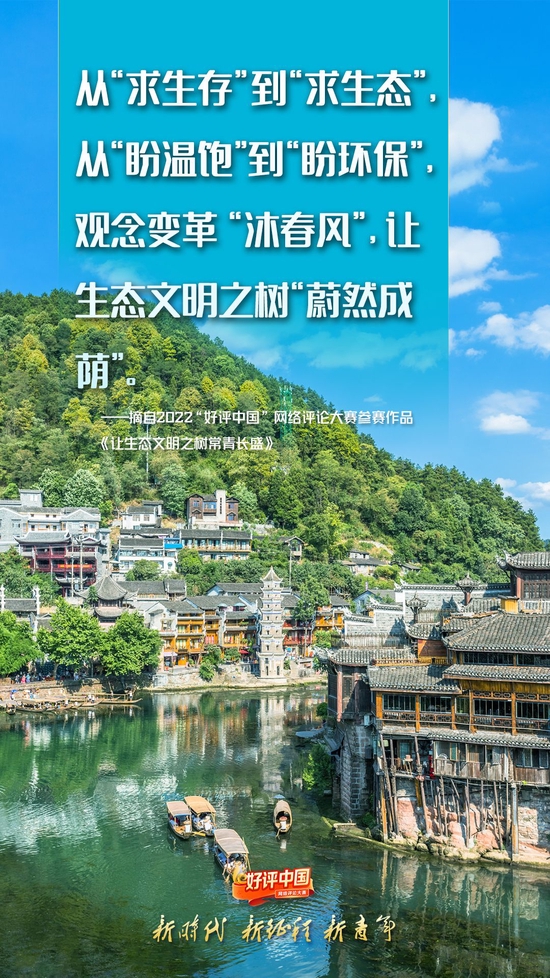 编者按:自4月28日,2022“好评中国”网络评论大赛在长沙启动以来,网民积极参与其中,全网上下“好评”如潮。我们从参赛作品中摘选一批“网言网语”,从“思政、经济、国防、民生、法治、生态、教育、文化、乡村、青年”等十个方面,看他们笔下可亲可爱可敬的中国。