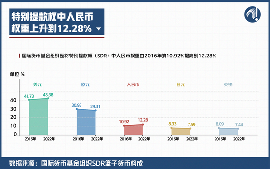 近日,国际货币基金组织还将特别提款权(SDR)中人民币权重由2016年的10.92%提高到12.28%。