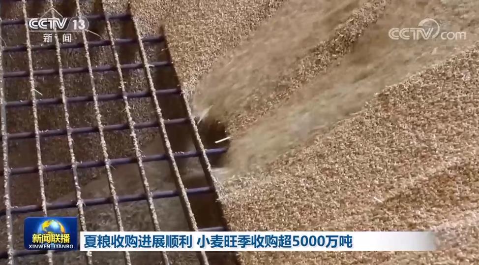 央视网消息(新闻联播):国家粮食和物资储备局最新发布,截至8月25日,主产区各类粮食企业累计收购小麦5030万吨,同比增加80万吨,旺季收购进度已超8成,大部分主产区已进入收尾阶段。今年夏粮收购呈现进度快、质量好、价格稳、市场活的显著特点,目前小麦每斤在1.53元左右,同比提高近3毛钱,种粮农民收入显著提高。